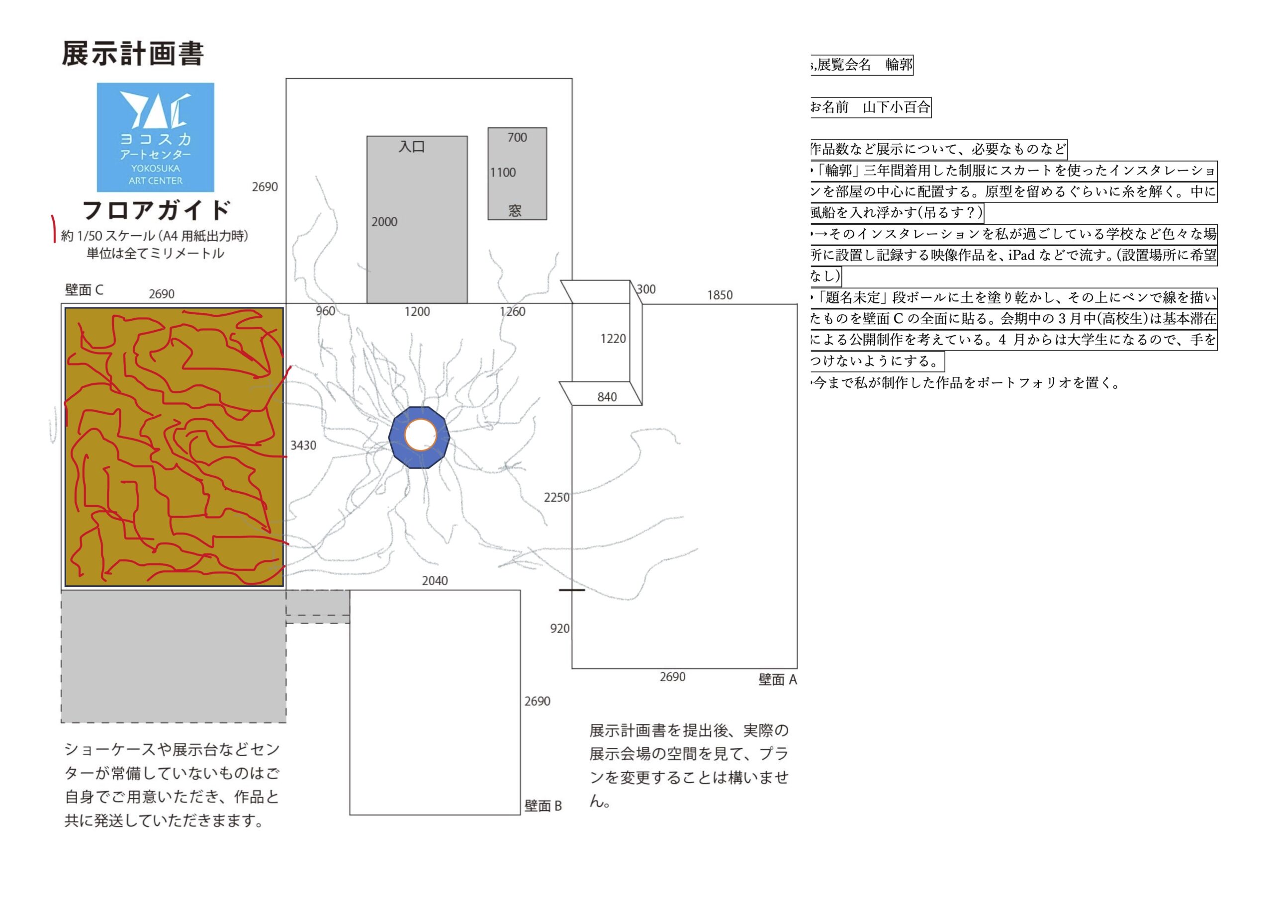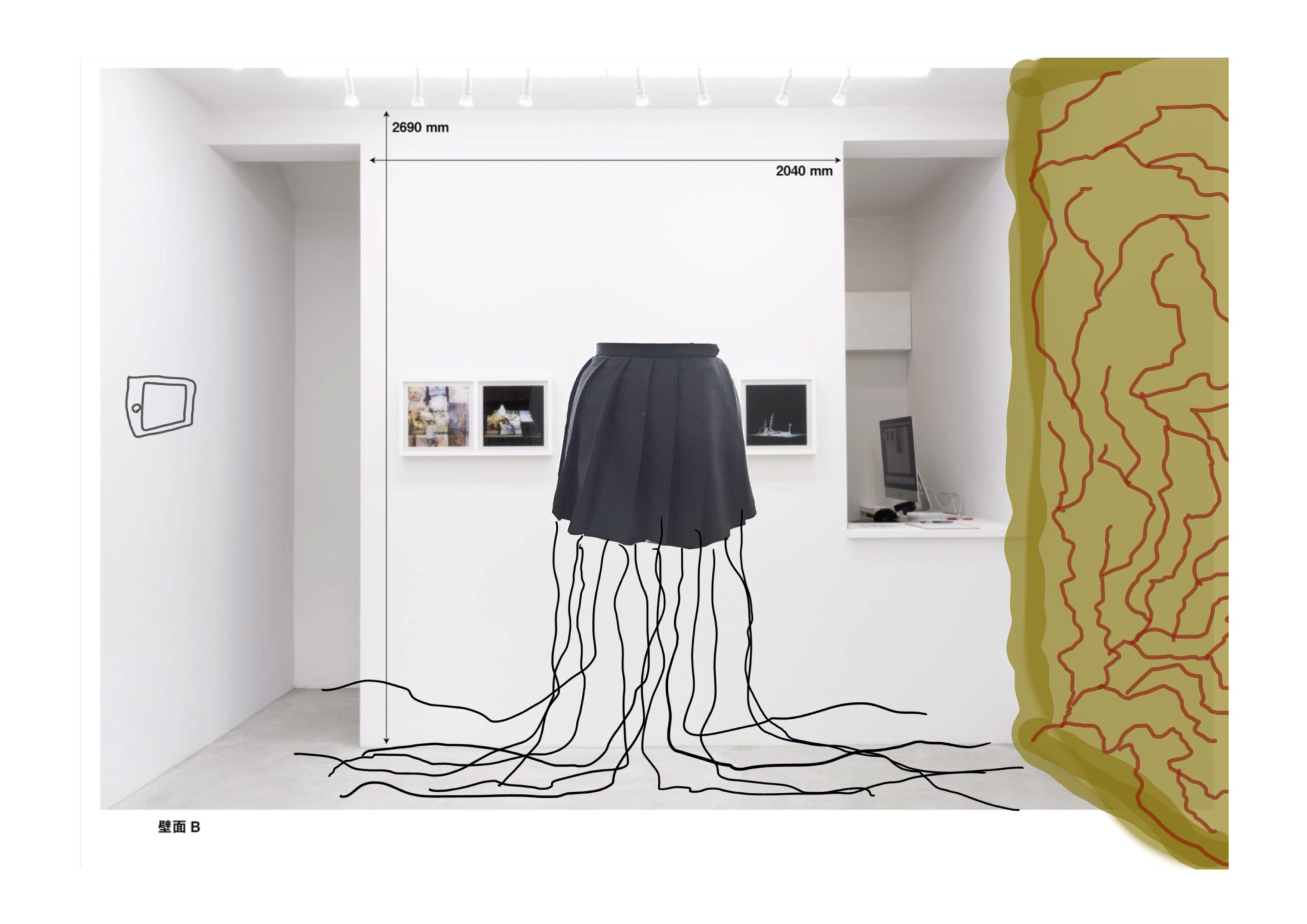 進路も決まり、高校最後に個展にチャレンジしたいと思った。テーマは「輪郭」。女子高生にとって制服とは武装であり身を纏う鎧のようなものである。制服のスカートが解けるその時、自分の武装が取れ新しい人物として変化する。高校三年の今、私は大学生に向けて必死に変わろうとしているのだ。この展覧会では自分自身の輪郭を解いて、再構築したいと考えている。
