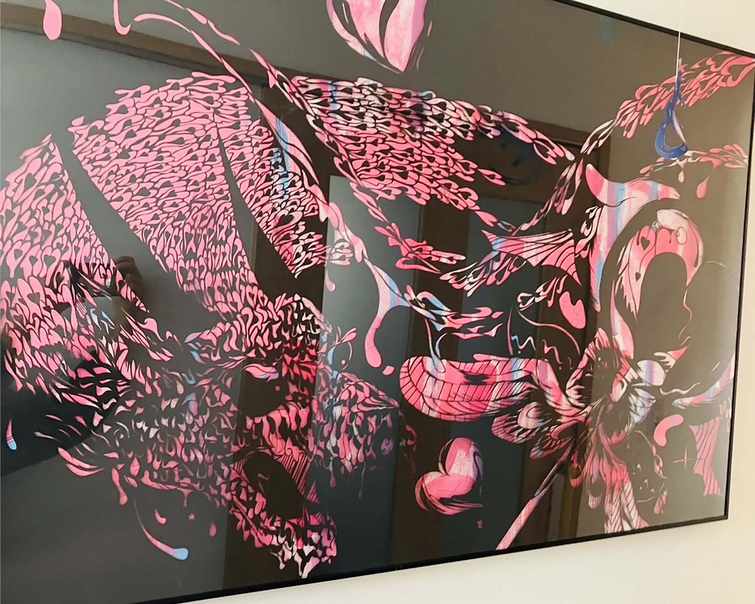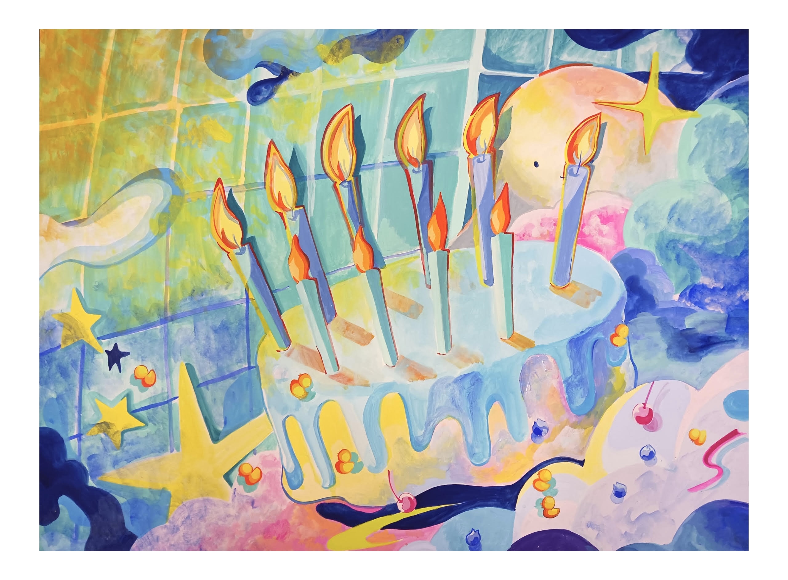 2006年埼玉県生まれ、2021年女子美術大学付属高等学校入学、2022年デザインコース専攻へと進む。アクリル絵の具を中心に制作を進めており、色鮮やかな色彩を好む。卒業に向けて作品を制作中。
