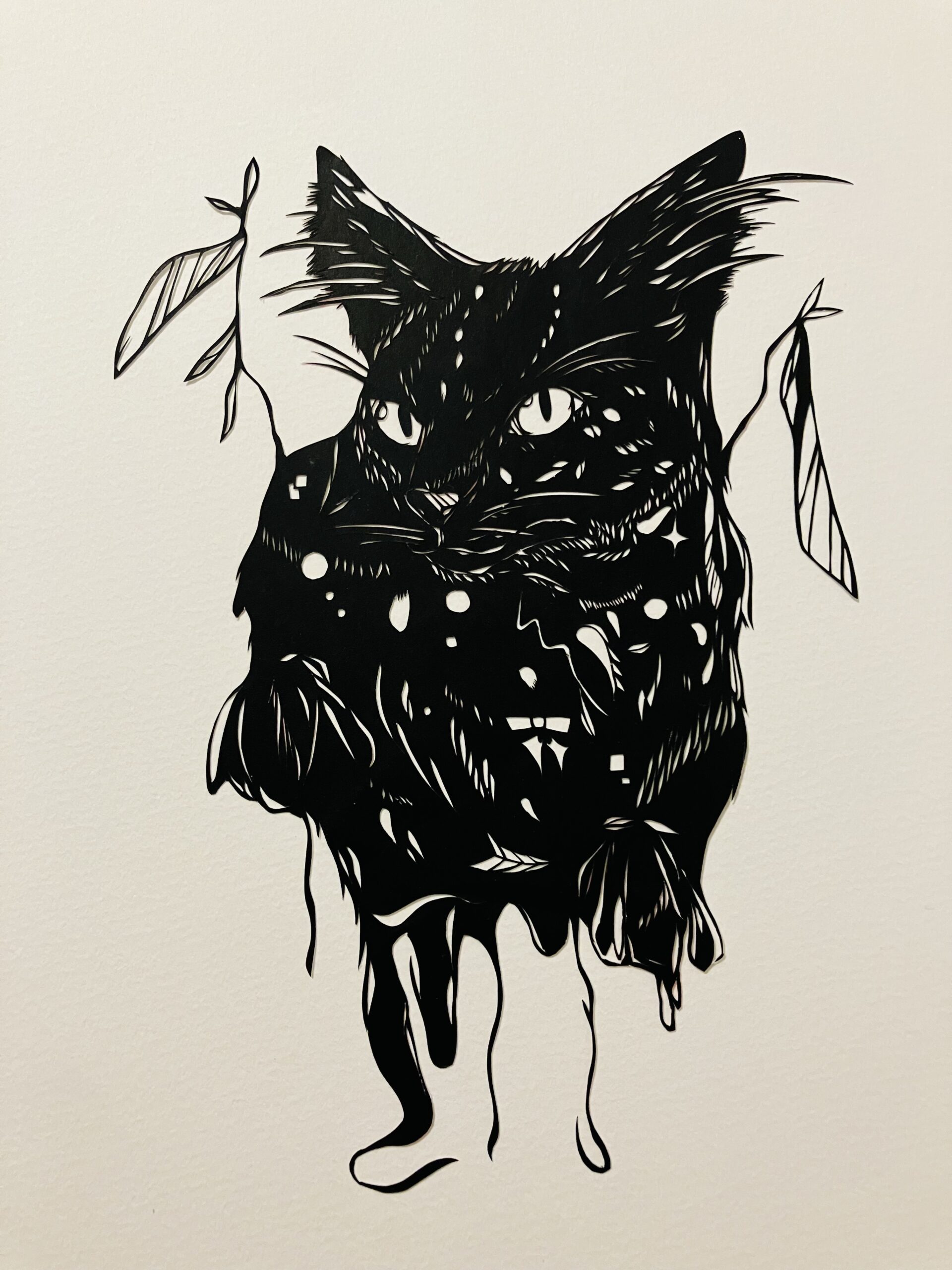 2008年生まれ。2022年に切り絵に出会い切り絵の表現方法の豊かさに惹かれ切り絵の制作を開始。魔法、溶かすなどの今までにない表現を切り絵と掛け合わせています。また、どこか悲しそうな表情をしている動物達だからこそ見入ってしまうような作品を制作。